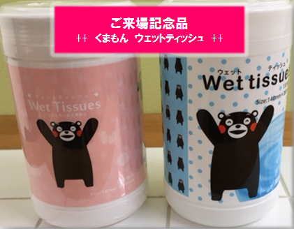 今回、ホームページを見て頂いたお客さまに、くまもんのウェットティッシュを