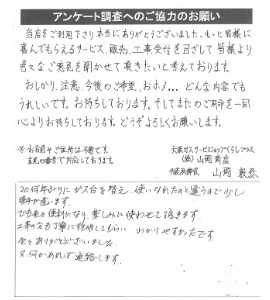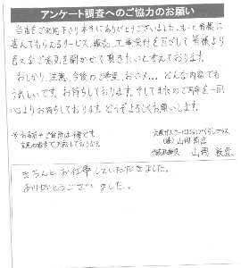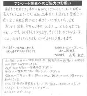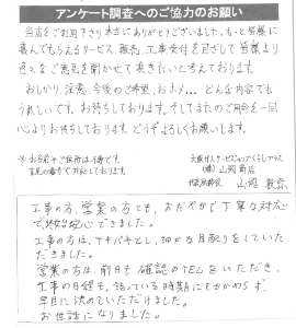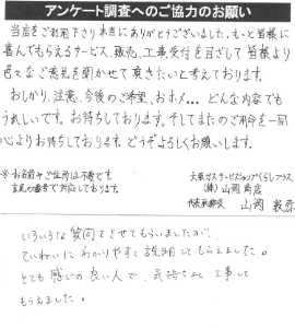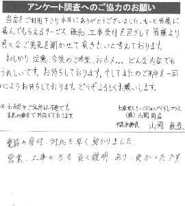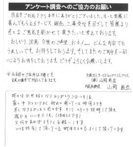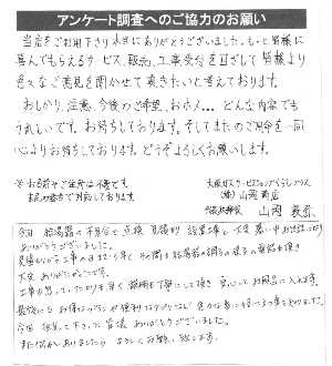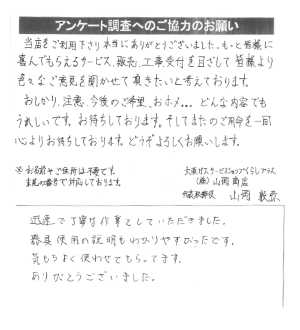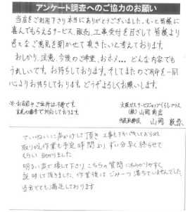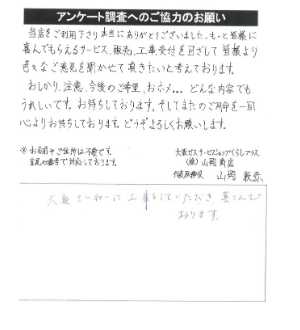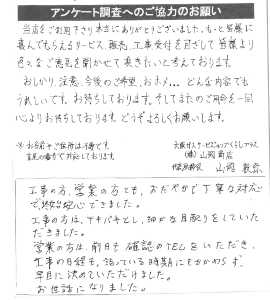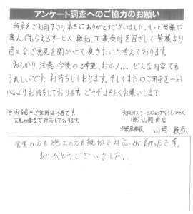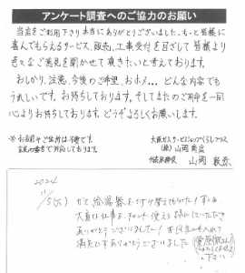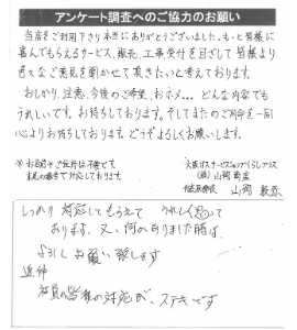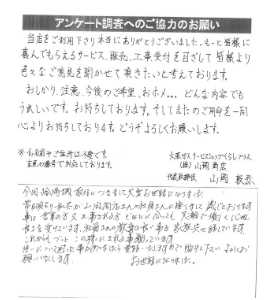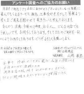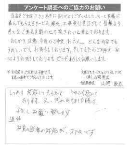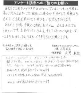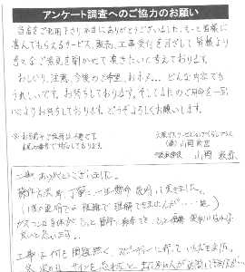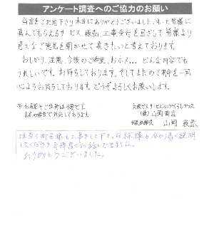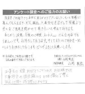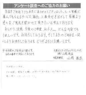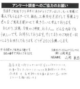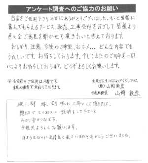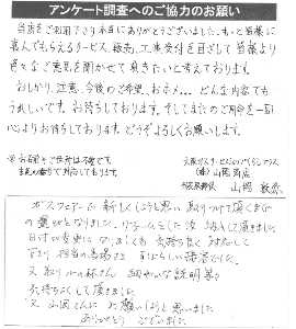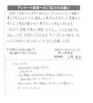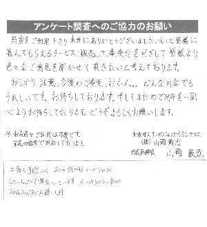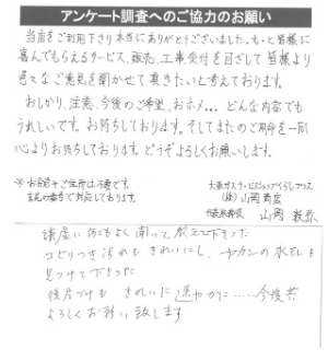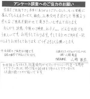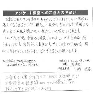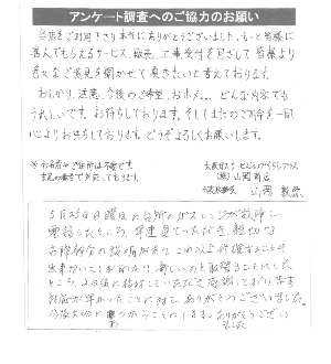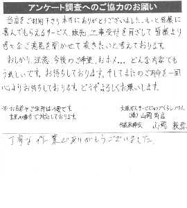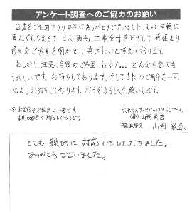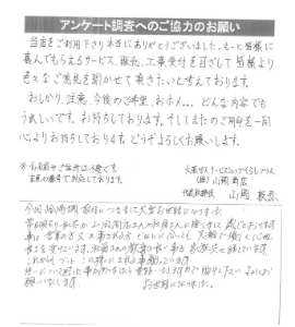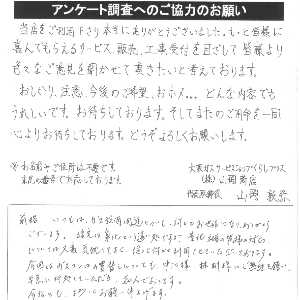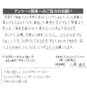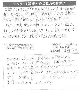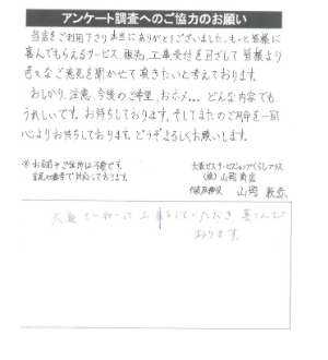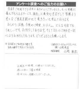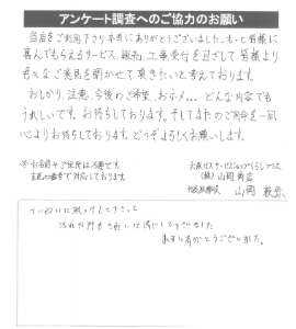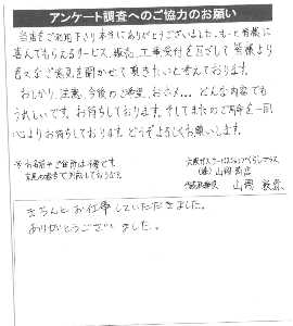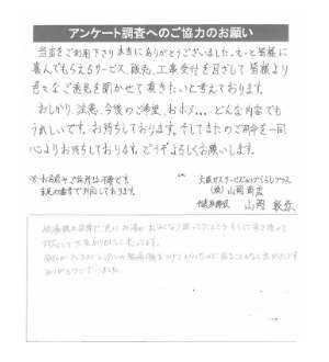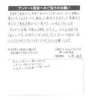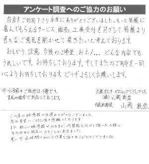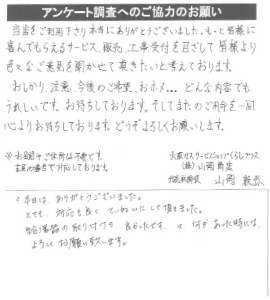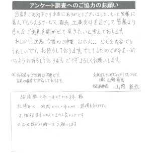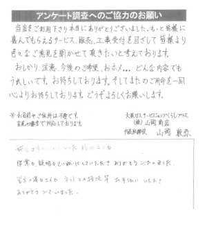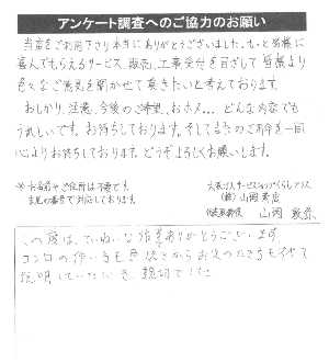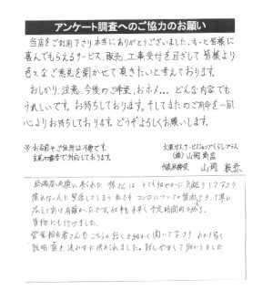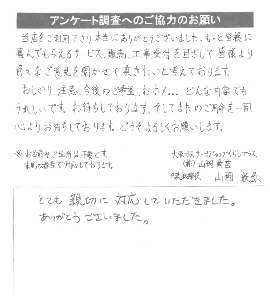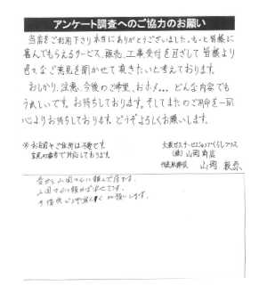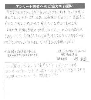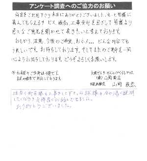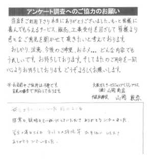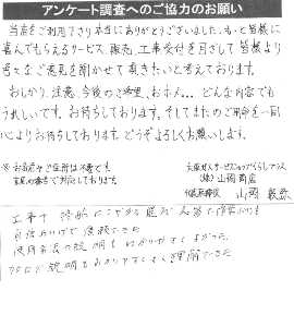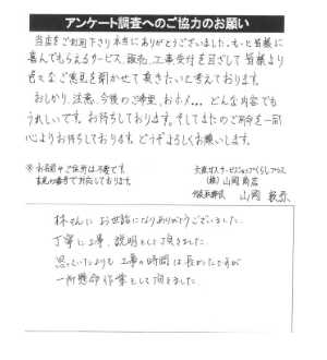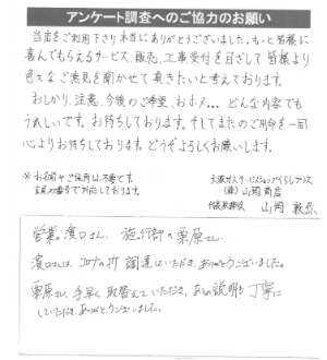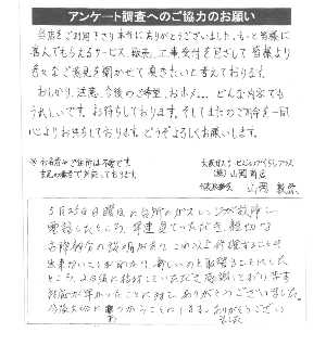工事の依頼でお電話をさせて頂いた際に、こちらの都合で何度か日程を変化した時も、その都度親切に対応して下さった女性スタッフ様に好印象を受けました。