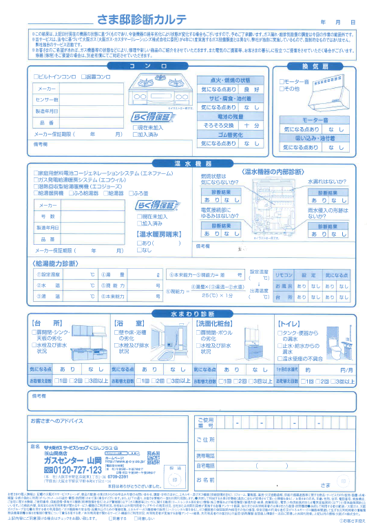 診断カルテに基づいてお客様宅の給湯器、コンロを診断いたします!