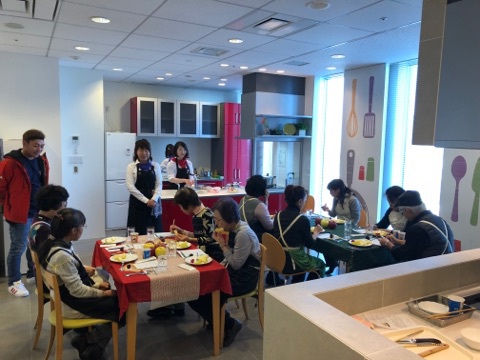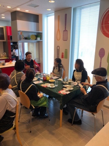 りんごの魅力をお話しした後、簡単な調理実習も交えて